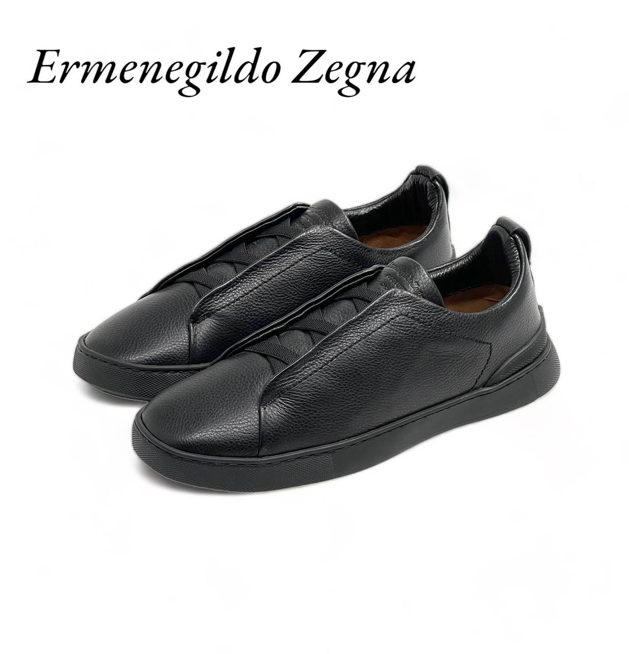 Ermenegildo Zegna кожаные кеды на резинках с черной подошвой