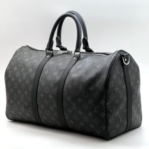 LV дорожная сумка 45 см серая монограмма черная кожа с кожаным плечевым ремнем