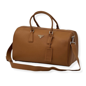 PRADA дорожная сумка кожа того карамельного цвета с металлическим логотипом