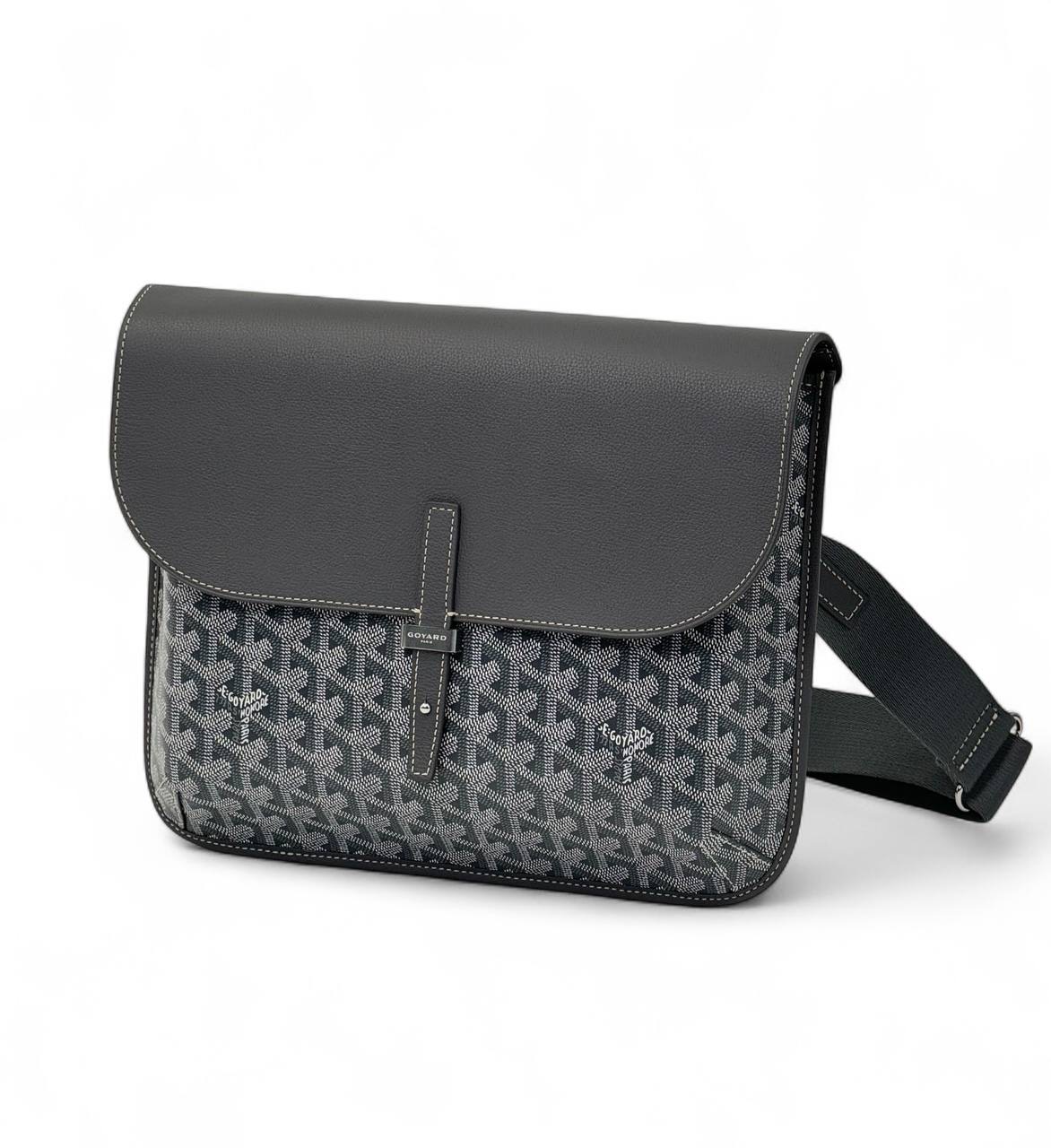 Goyard мессенджер с клапаном из канвы в монограмму серый
