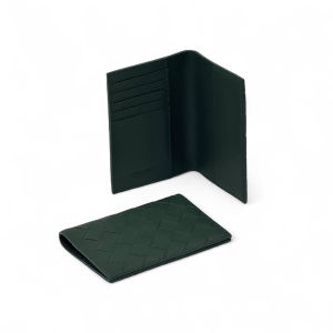 BV обложка для паспорта из кожи ягненка крупное плетение зеленого цвета