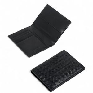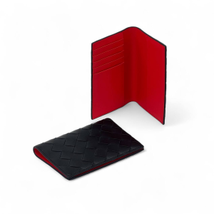 BV обложка для паспорта из кожи ягненка крупное плетение с наружи черного цвета внутри красного цвета