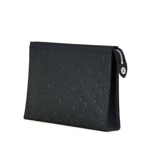 LV борсетка клатч Pochette Voyage Souple из черной кожи с тиснением в монограмму