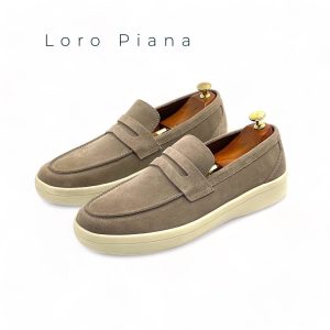 LORO PIANA лоферы низкие замша с белой высокой подошвой