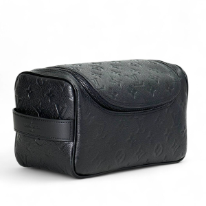 LV несессер круговая молния ручка сбоку черная кожа с тиснением монограммы