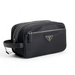 PRADA несессер черный из нейлона с наружными карманами на молнии