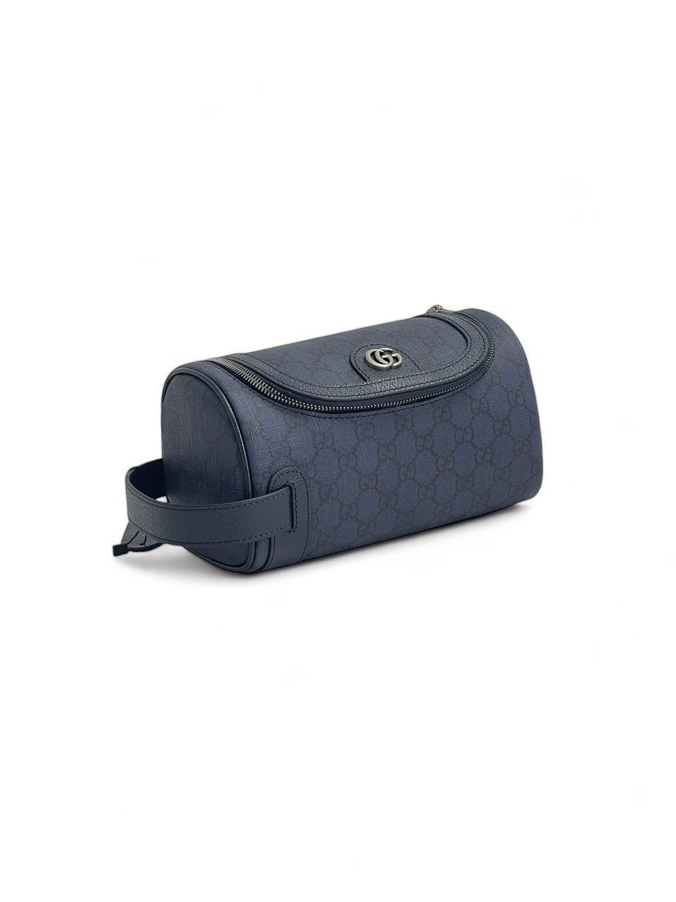GUCCI несессер темно-синий в монограмму на круговой молнии с ручкой