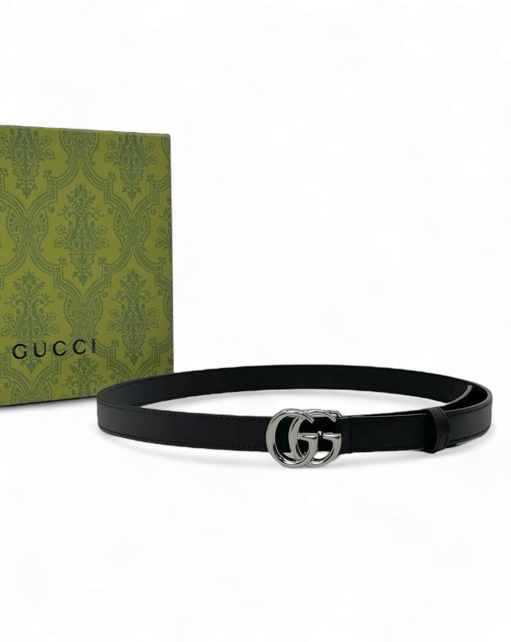 GUCCI ремень 18 мм черный гладкая кожа пряжка GG серебро