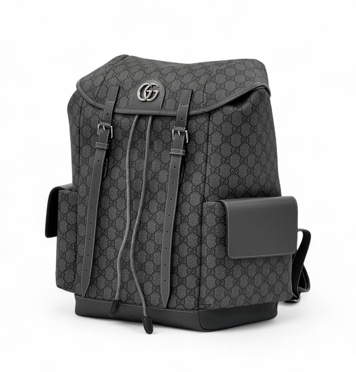GUCCI рюкзак канва серая монограмма с клапаном и боковыми карманами