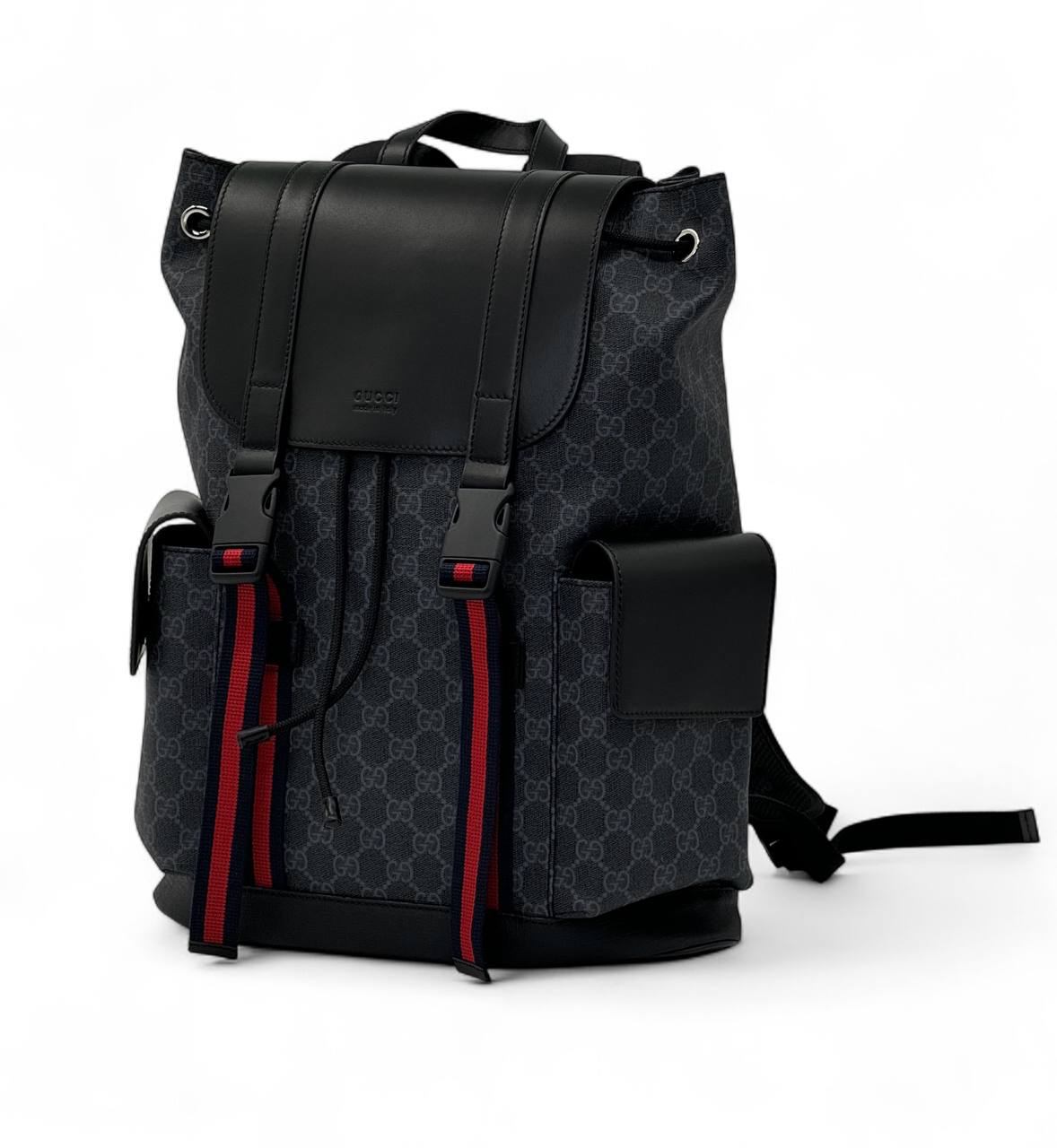 GUCCI рюкзак синяя канва с кожаным клапаном и боковыми карманами