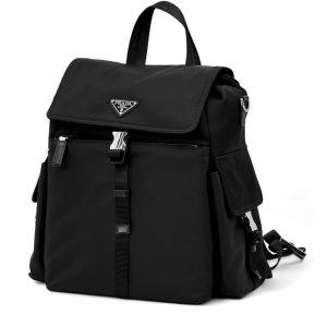 PRADA рюкзак нейлон с клапаном черный треугольный логотип