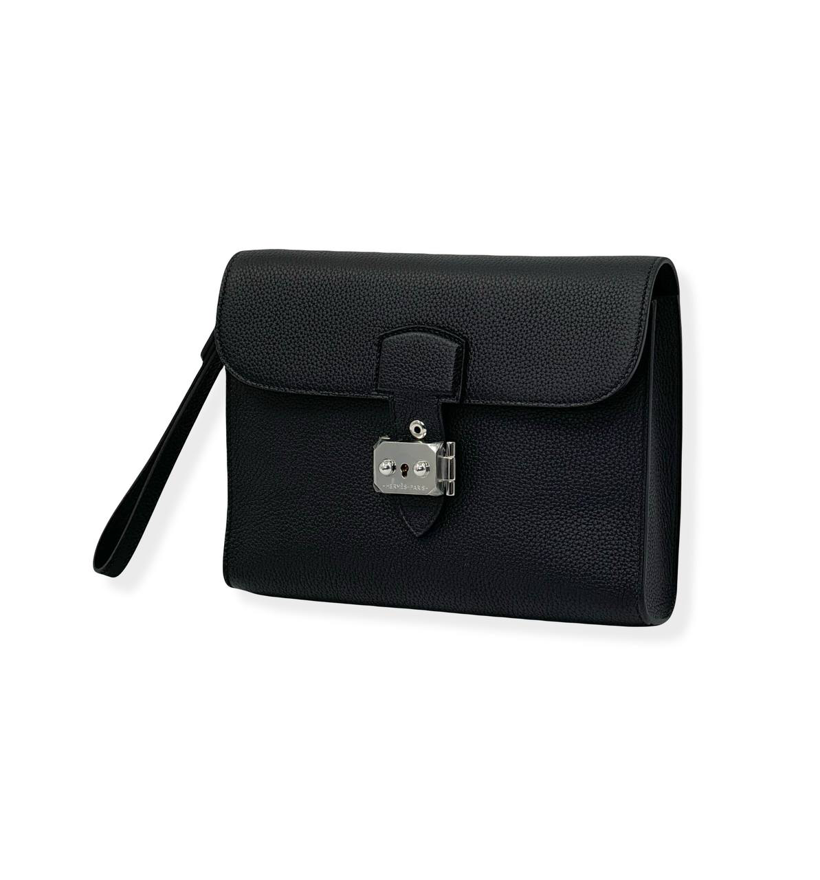 HERMES борсетка замок Etriviere кожа того цвет черный