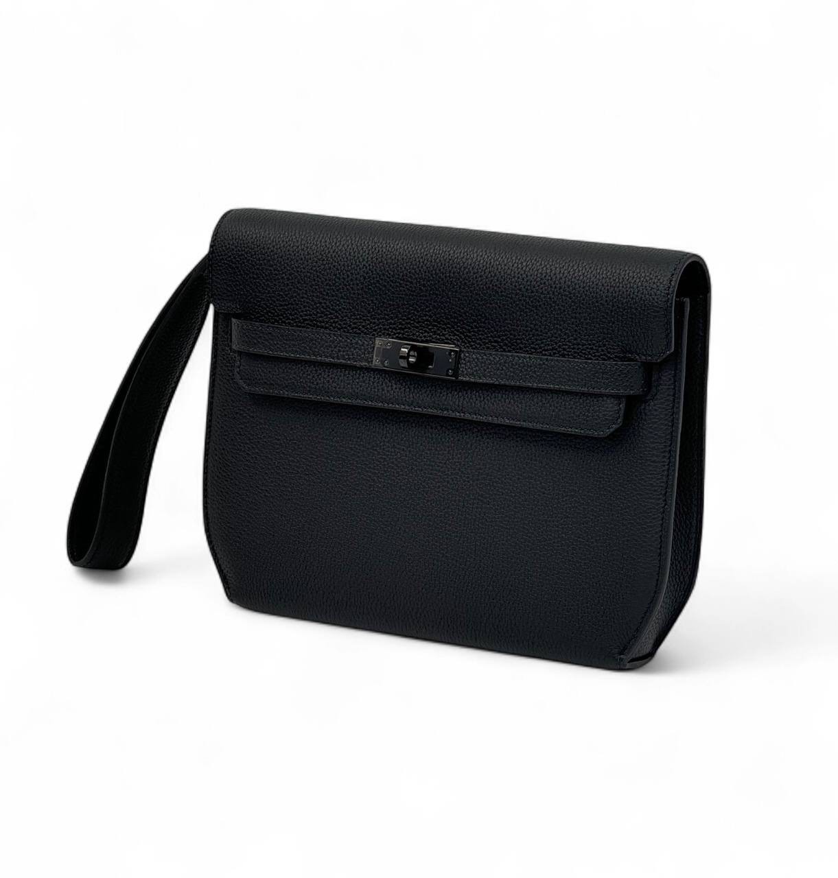 HERMES борсетка замок Kelly черного (цвета) кожа того черного цвета