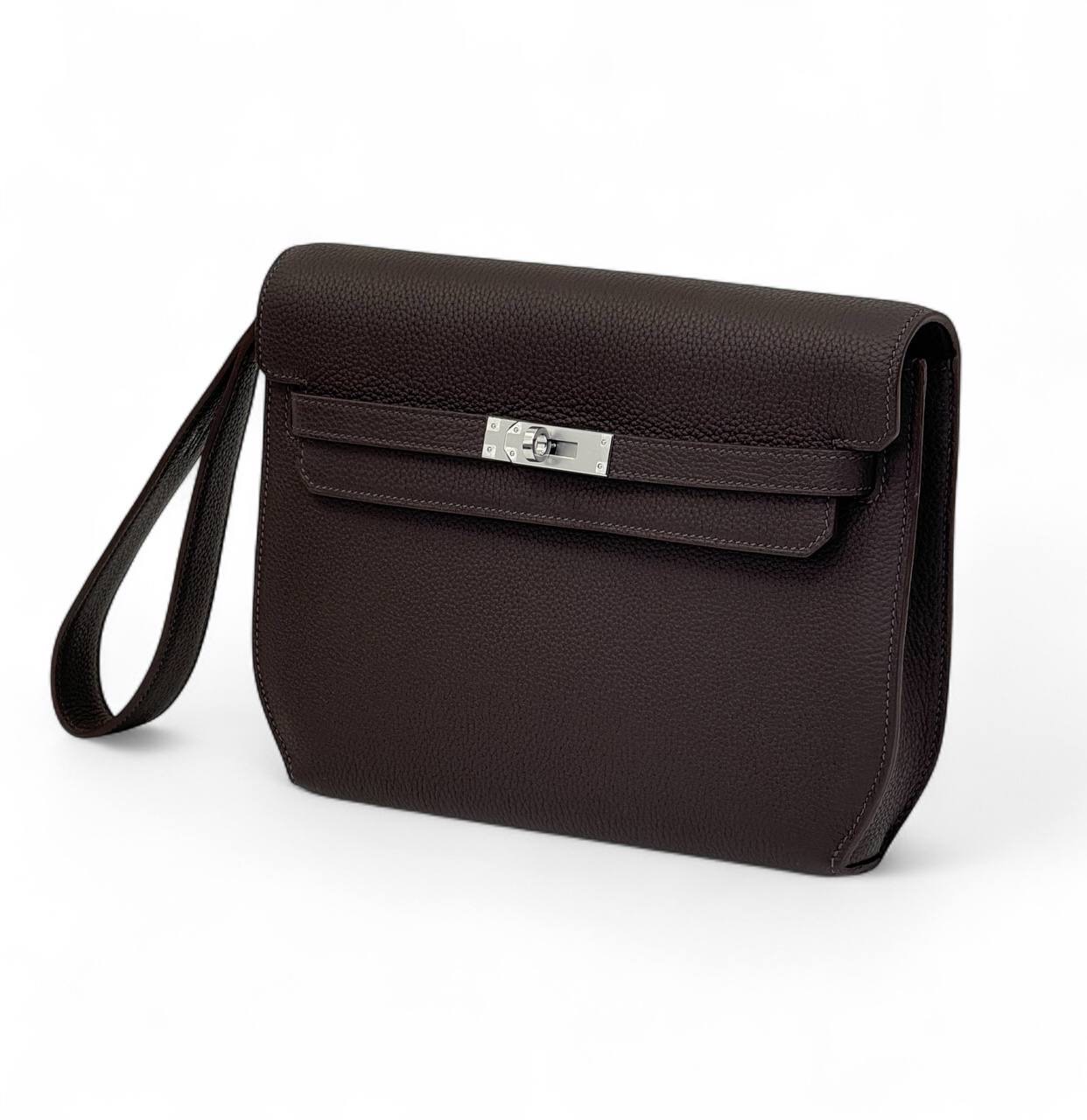 HERMES борсетка замок Kelly зернистая кожа того цвет темный шоколад