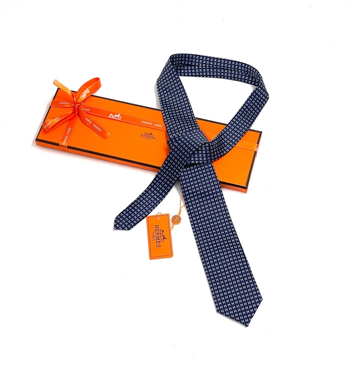 HERMES галстук темно-синий