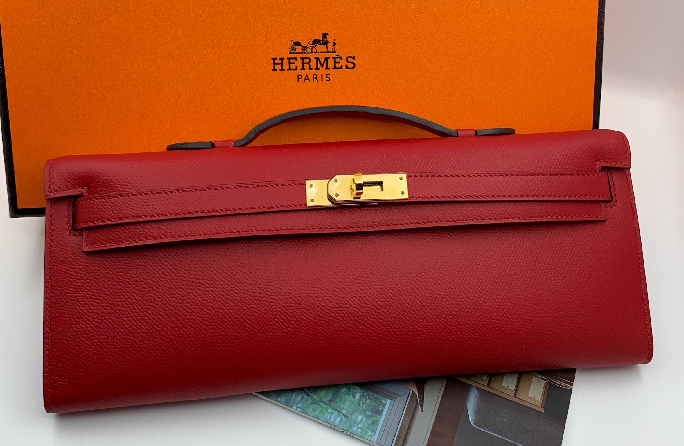 HERMES клатч Kellycut кожа Эпсом красный фурнитура золото