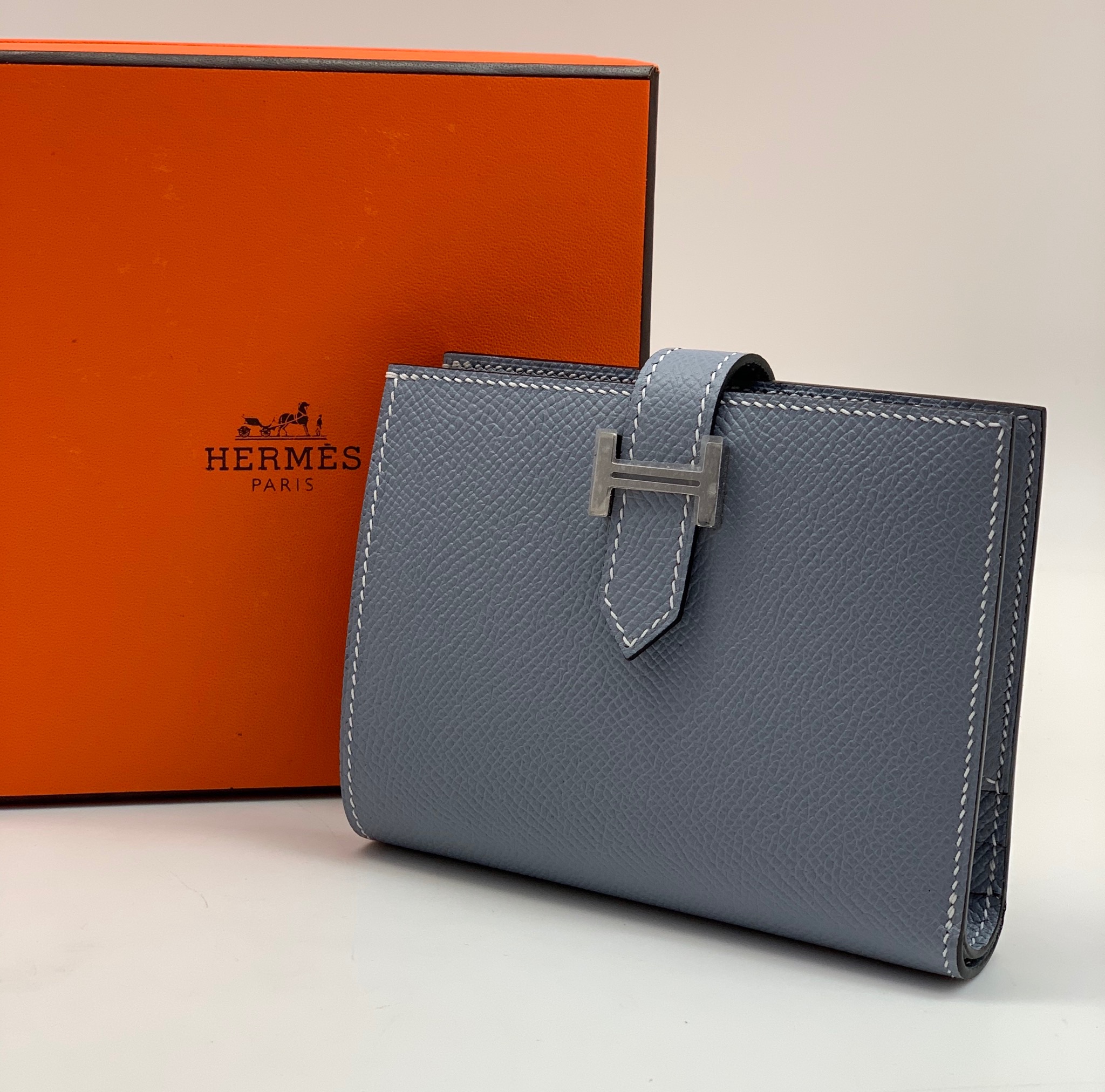 HERMES кошелек кожа Эпсом с хлястиком маленький голубой фурнитура серебро