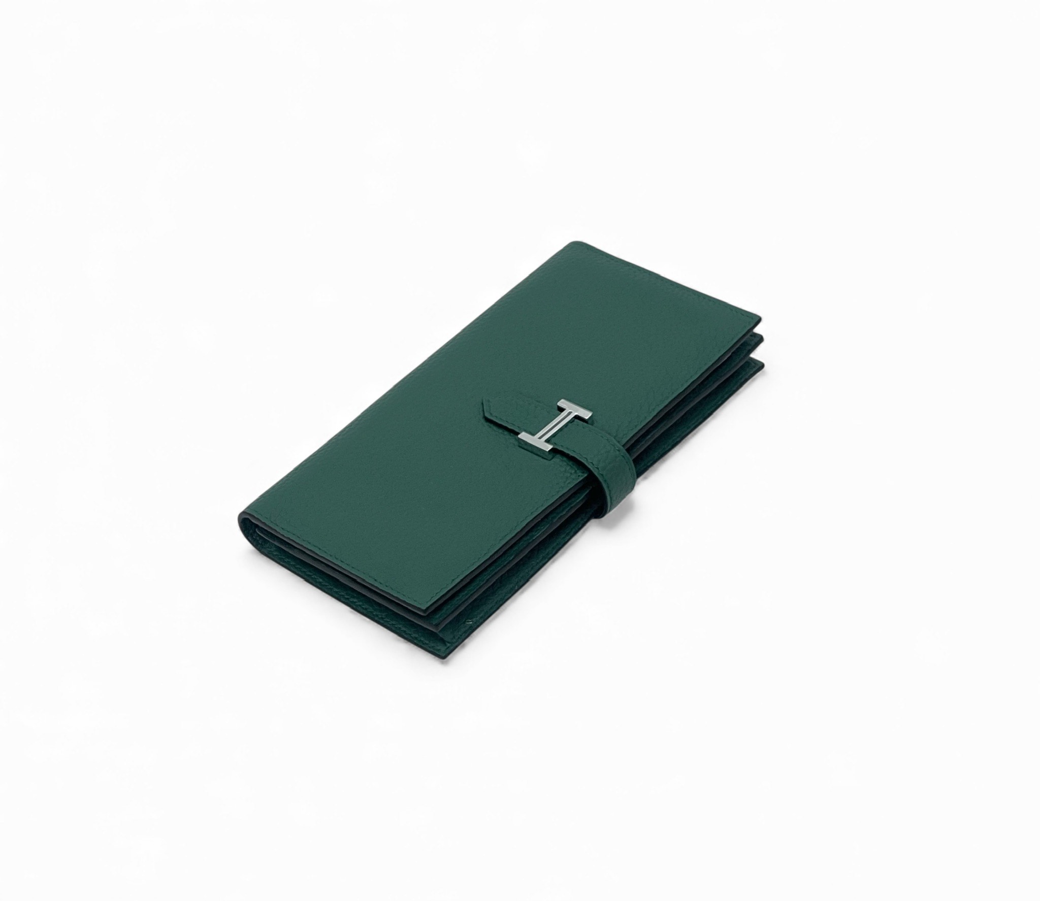 HERMES кошелек кожа Того с хлястиком зеленый фурнитура H серебро