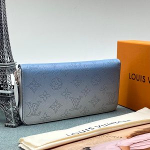 LV кошелек Zippy из голубой кожи теленка с перфорацией монограммы с эфектом гардиента