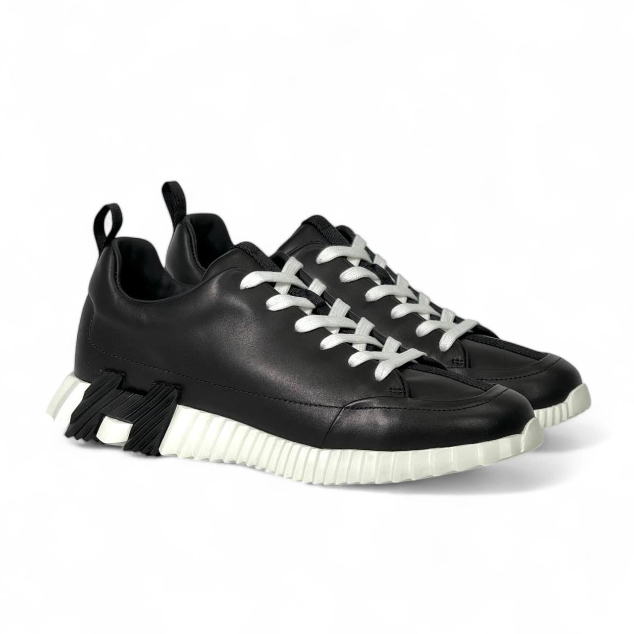 HERMES кроссовки черные кожаные на белой подошве с черной вставкой