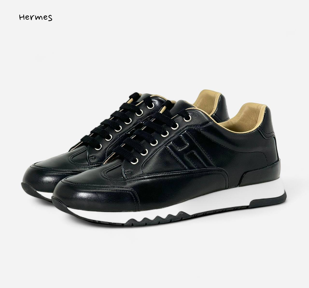 HERMES кроссовки черные на белой подошве с черной вставкой