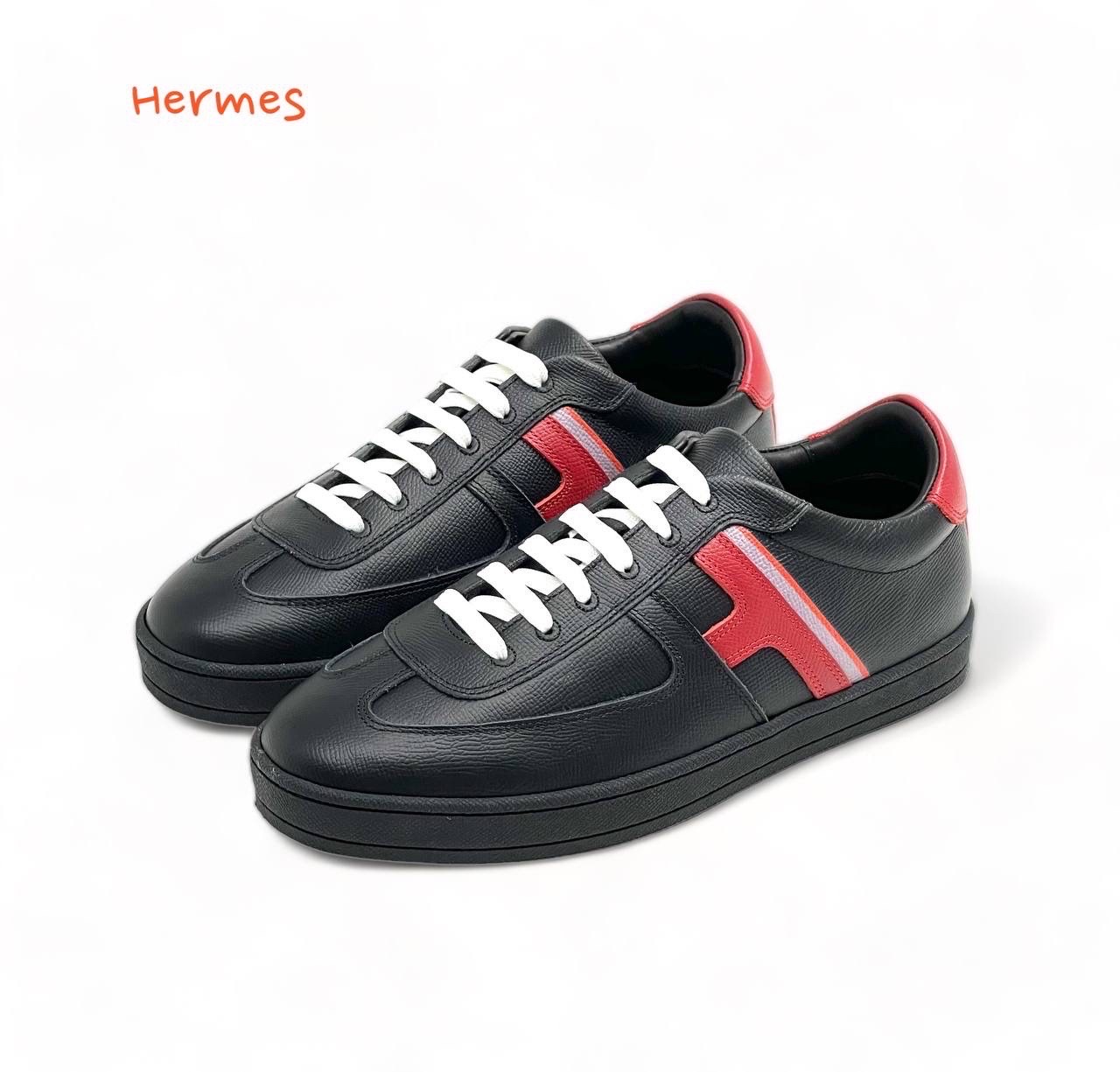 HERMES кроссовки черные с красной пяткой и лого с боку