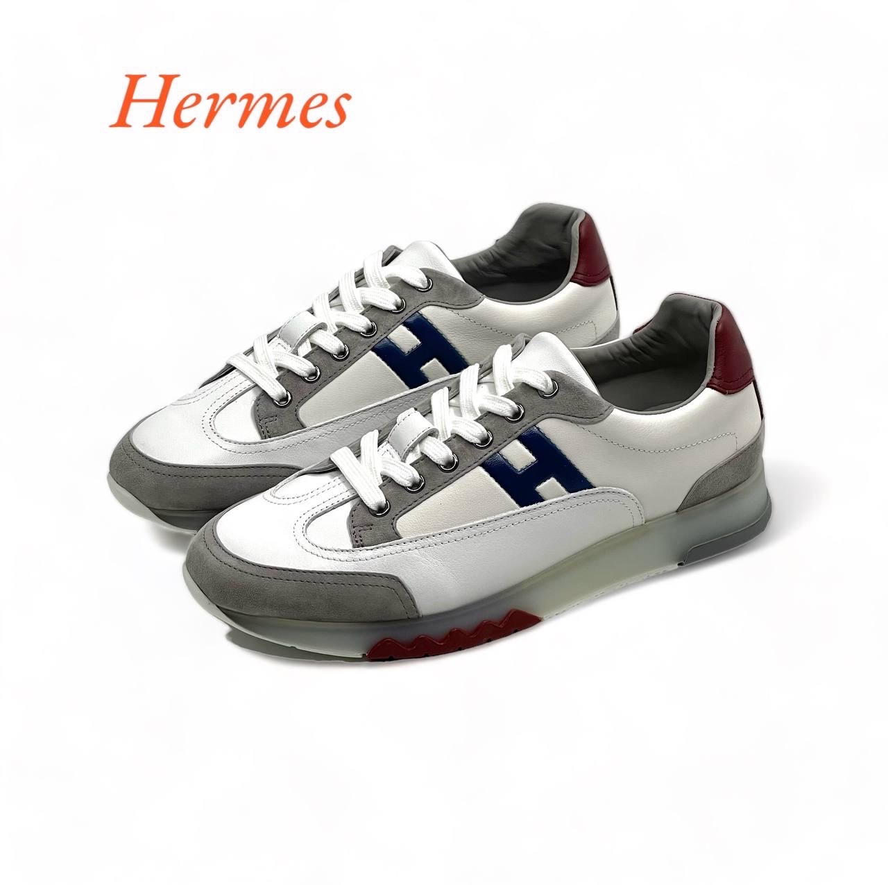 HERMES кроссовки кожа и замша 4-х цветов, белый, серый, бардовый и синий лого