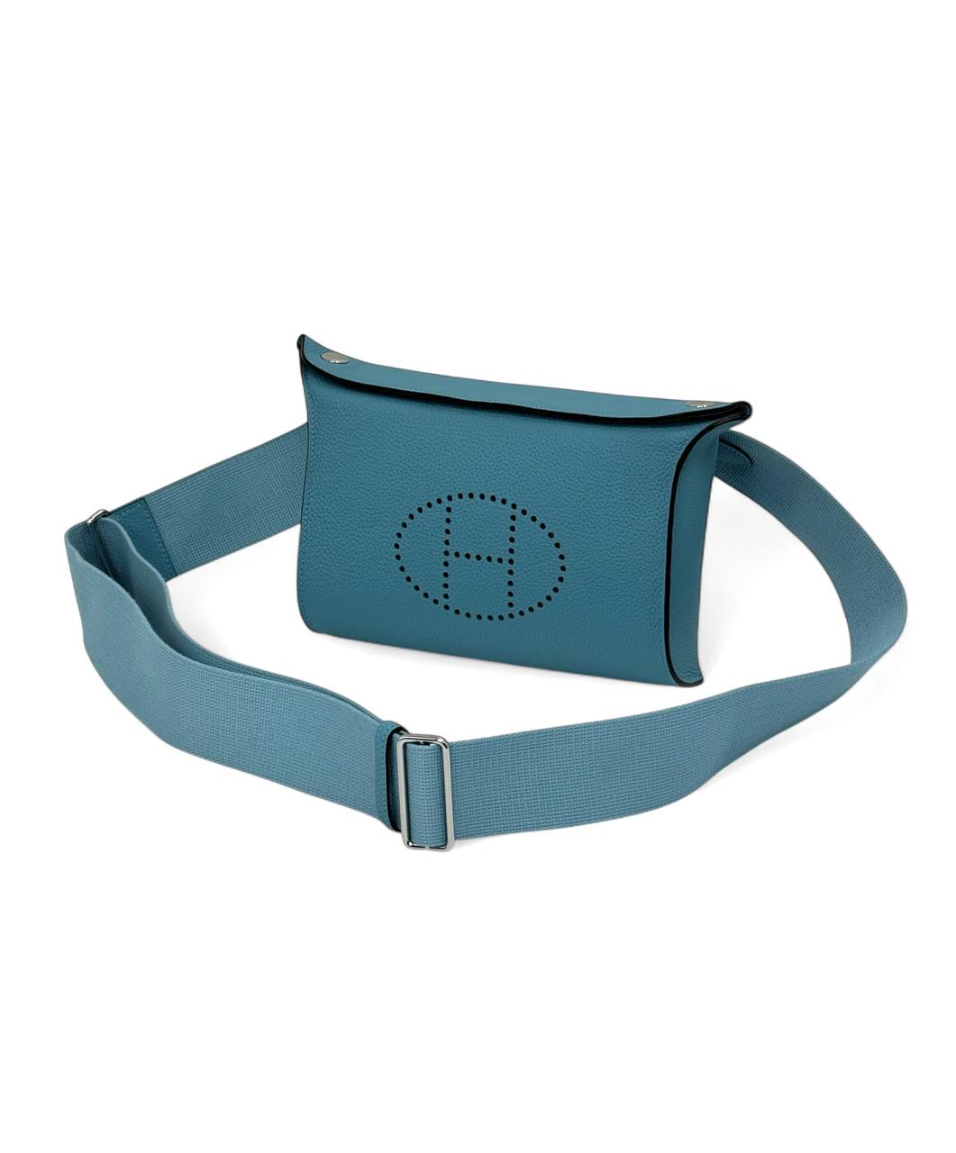 HERMES мессенджер кожа того с перфорированным логотипом голубого цвета