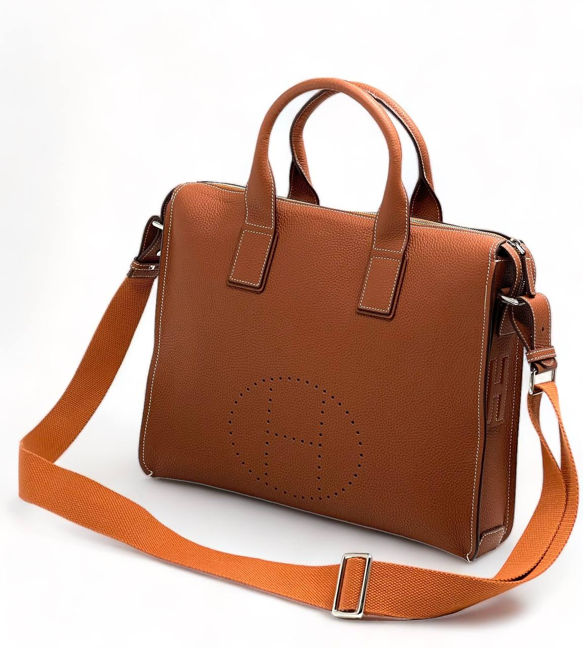 HERMES портфель коричневый с перфорацией в виде лого бренда
