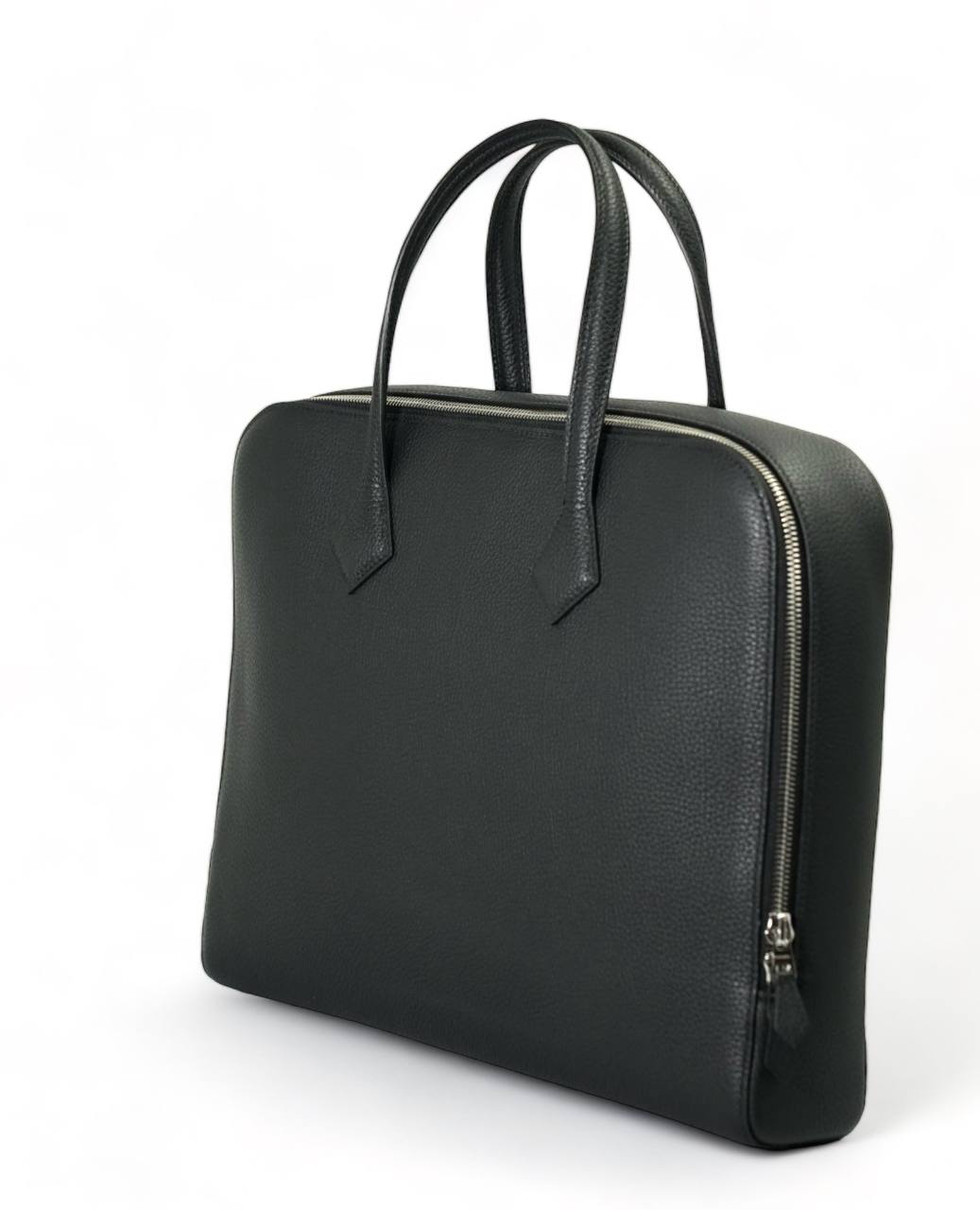 HERMES портфель кожа без плечевого ремня с глубокой молнией классический зернистая черная кожа