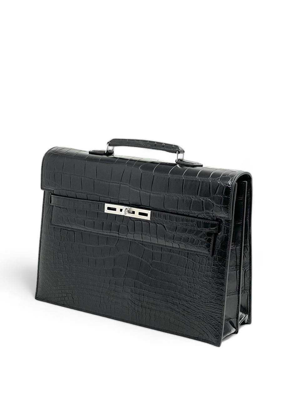 HERMES Портфель крокодил черный с клапаном с замком на двух лямках