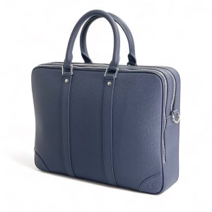 LV портфель большой с двумя разделами на молниях синяя кожа taiga