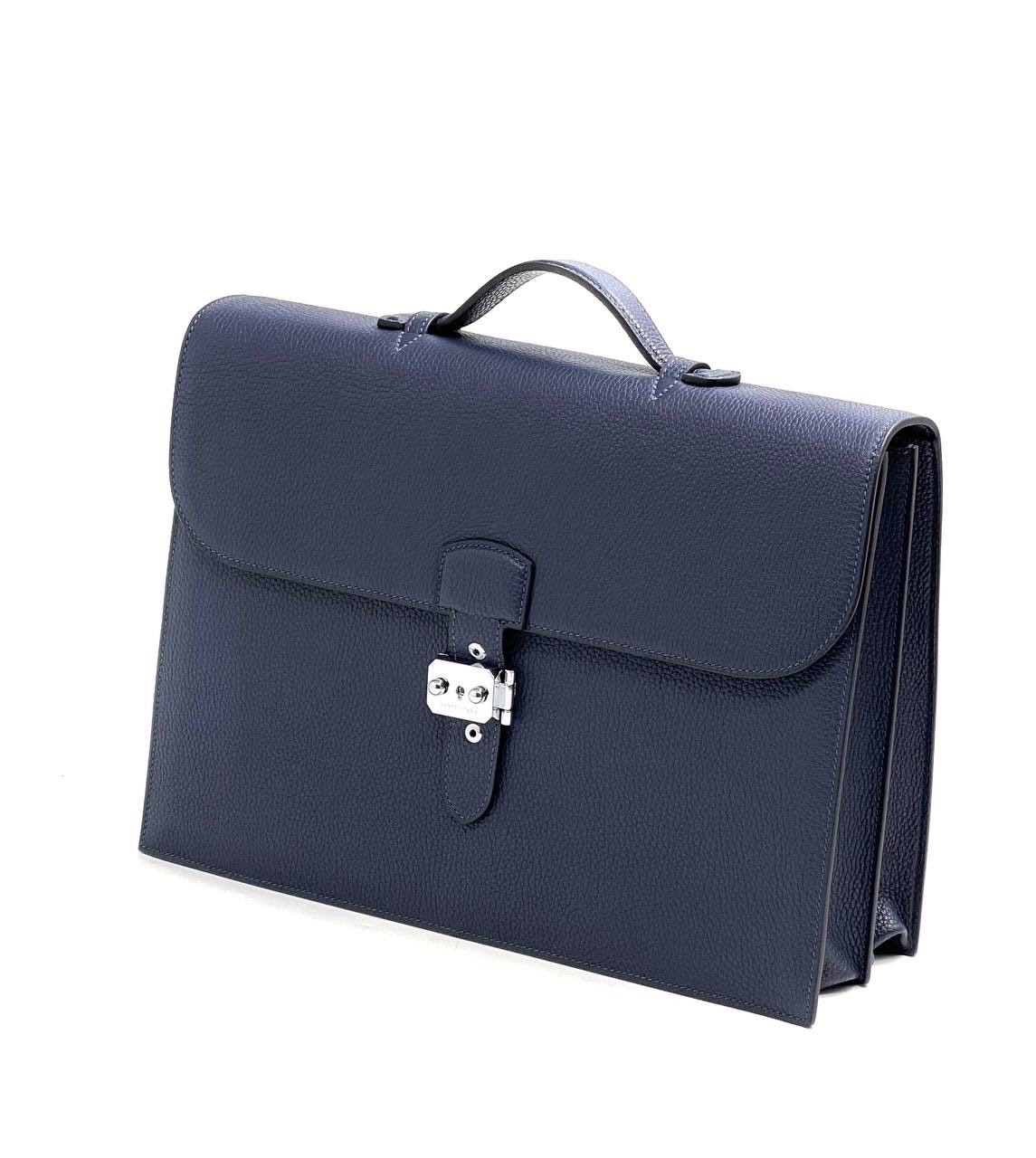 HERMES портфель кожа без плечевого ремня с глубокой молнией классический зернистая синяя кожа