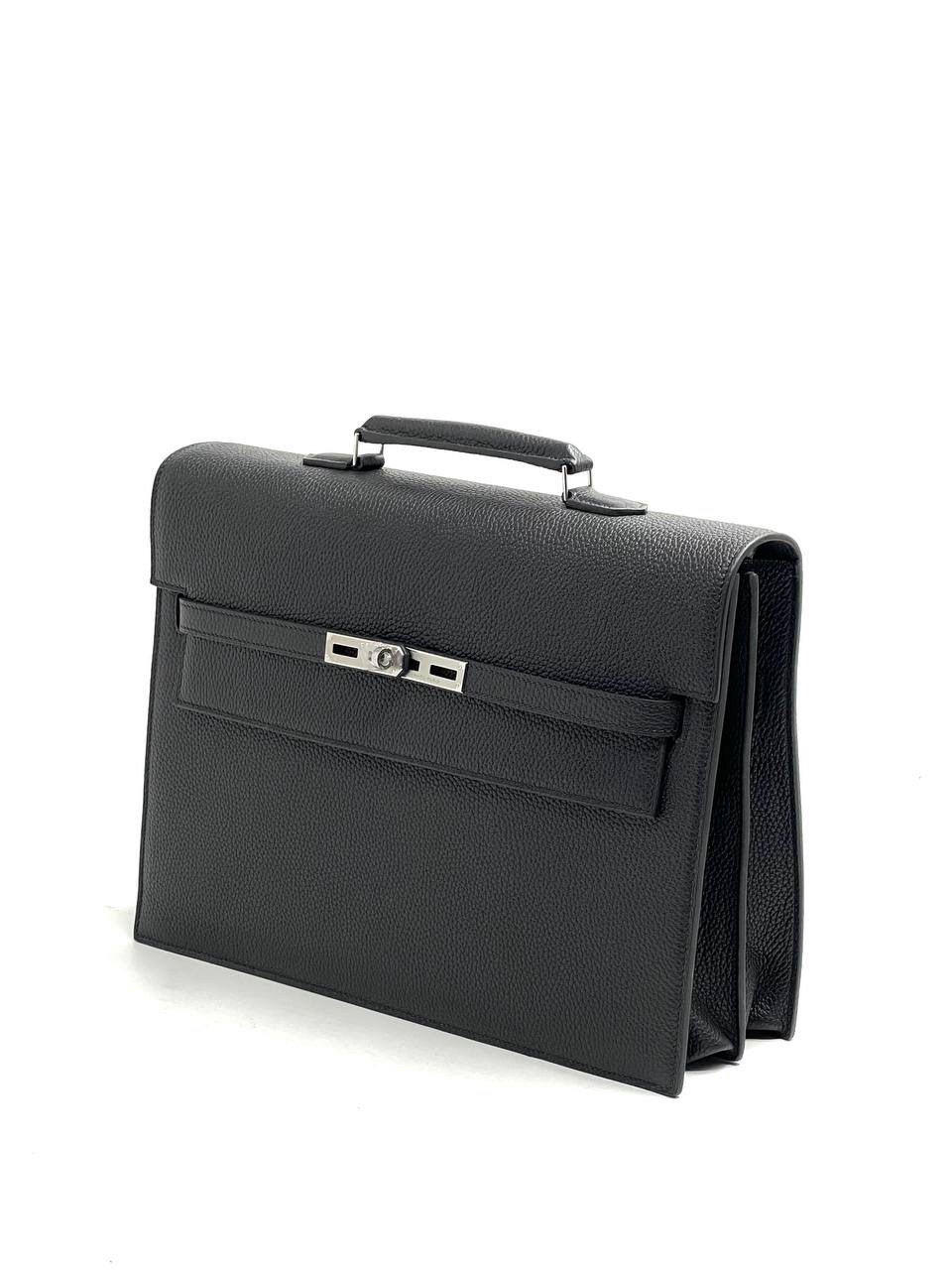 HERMES Портфель того черный с клапаном с замком на двух лямках