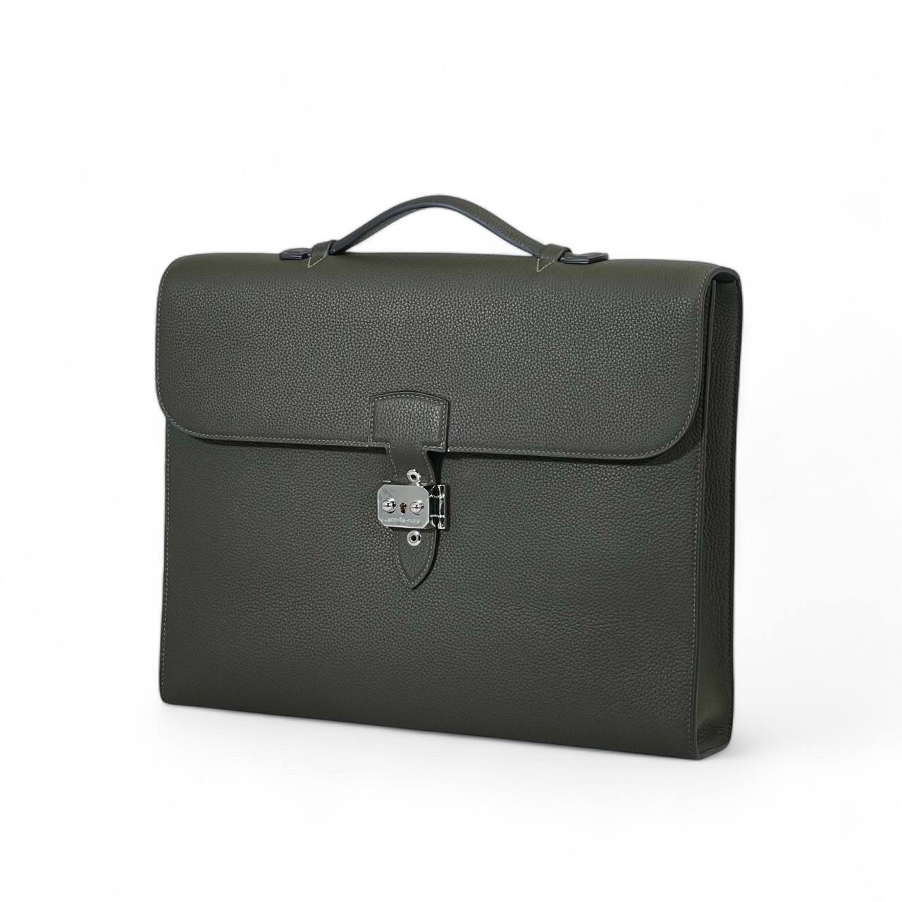 HERMES Портфель того зеленый графит мягкий с клапаном с металлическим замком
