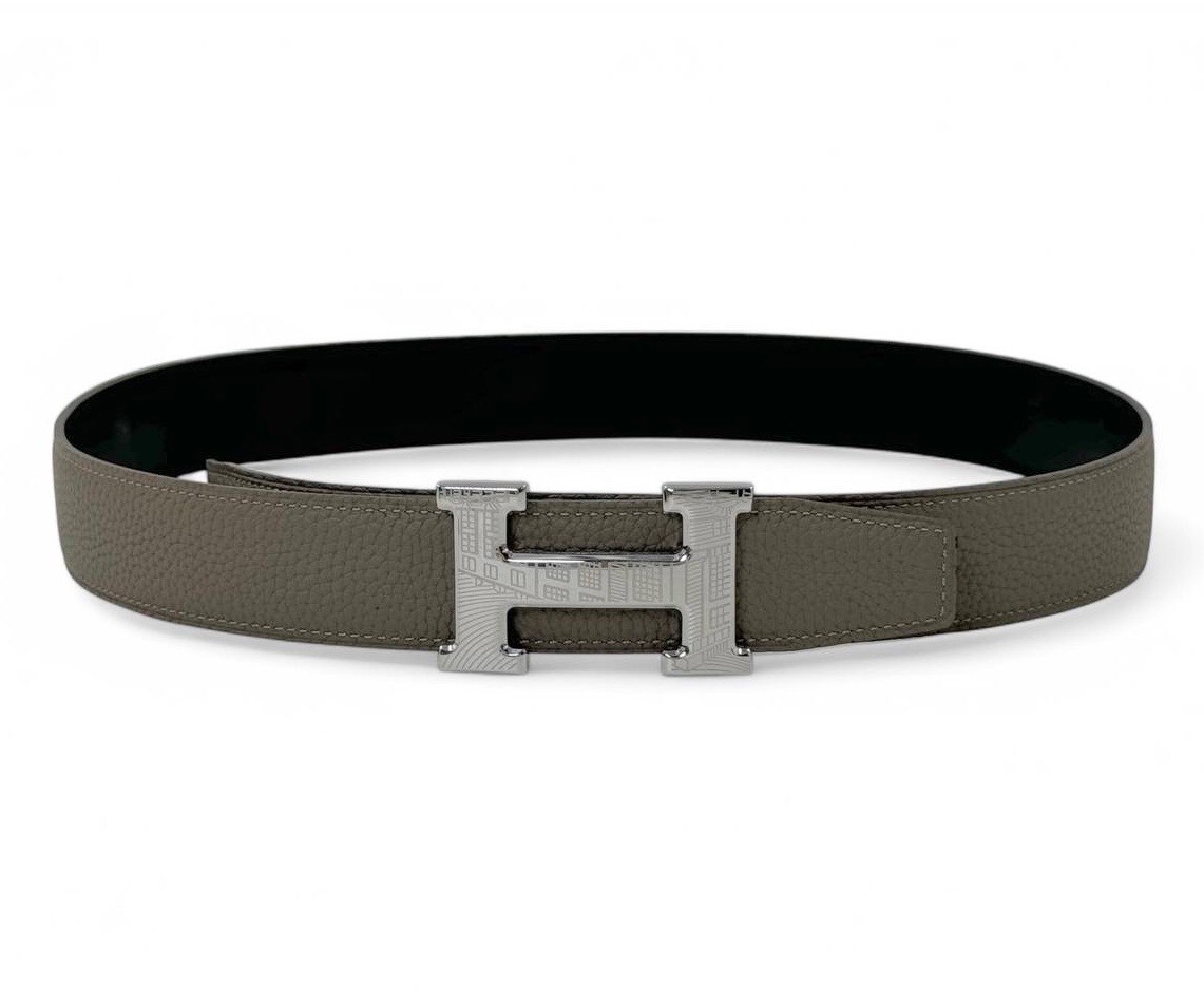 HERMES ремень 32 мм двухсторонний черно-серый того сьемная пряжка