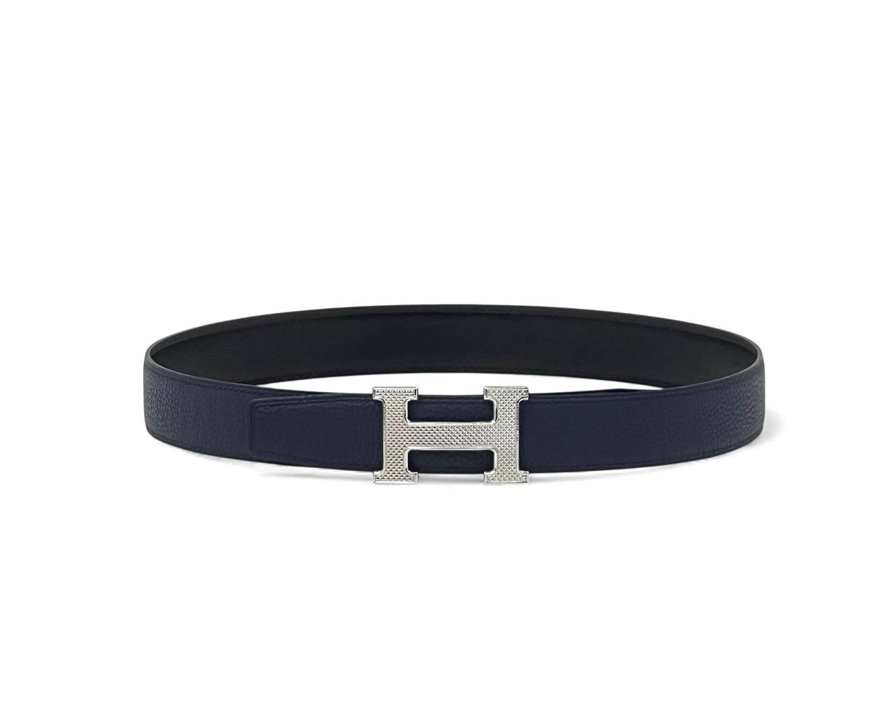 HERMES ремень 25 мм двухсторонний черно-синий эпсом сьемная пряжка