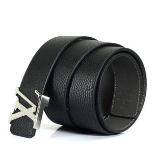LV ремень кожа Togo черно-синий пряжка LV серебро