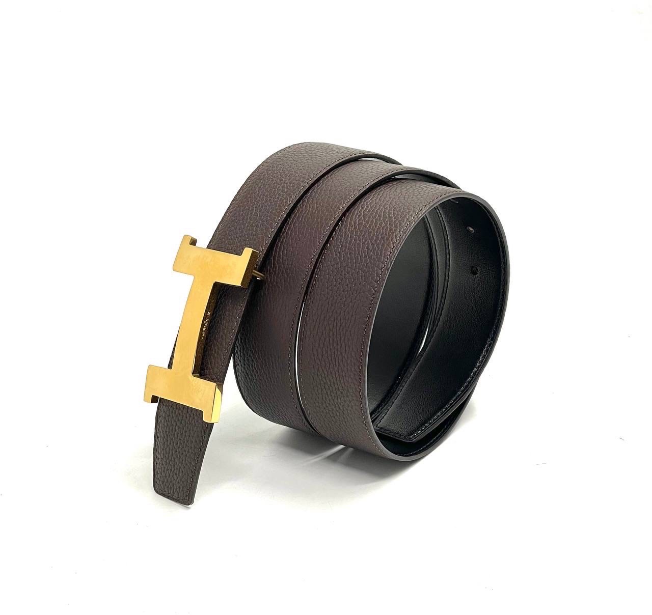 HERMES ремень двухсторонний коричневая кожа того и черная гладкая, золотая пряжка пряжка Н