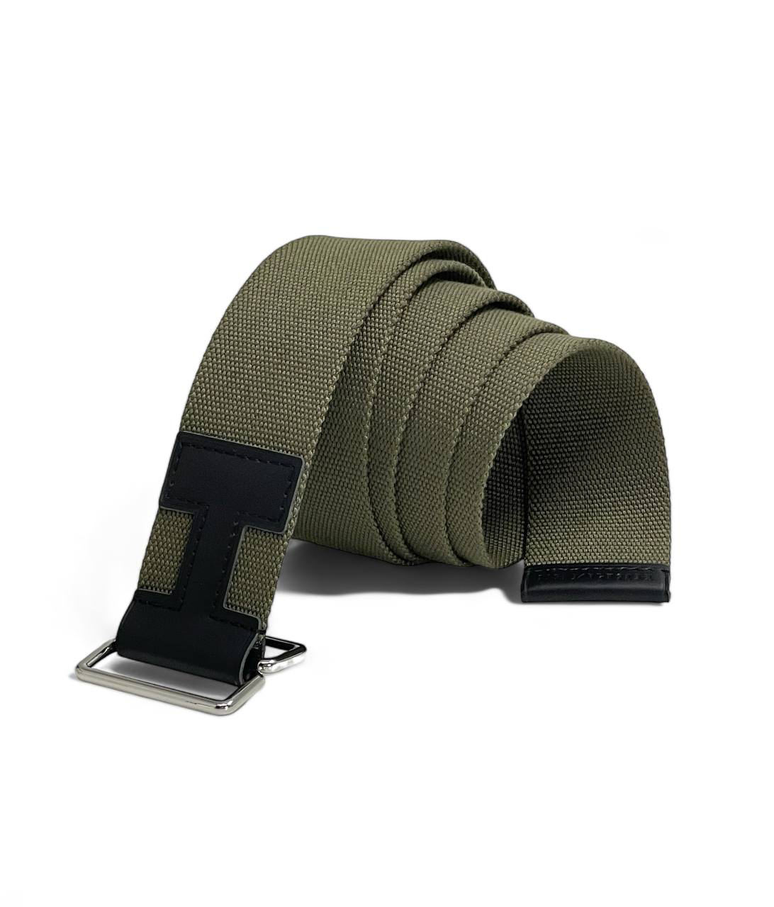HERMES ремень зеленый текстильный пряжка черная кожа