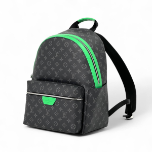 LV Рюкзак Discovery канва в серую монограмму с боковыми карманами и с кожаными салатовыми вставками