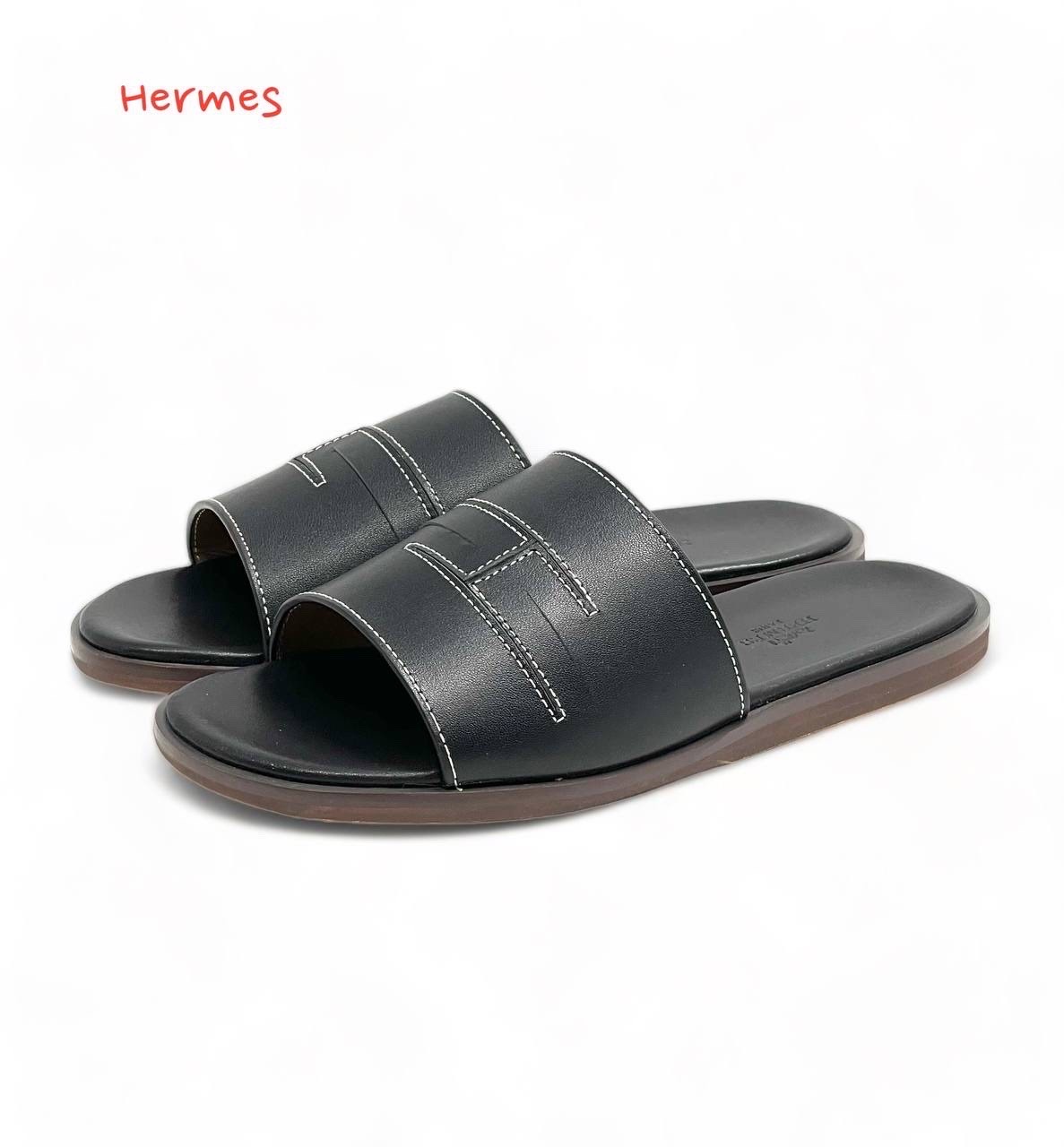 HERMES Тапочки черные гладкая кожа