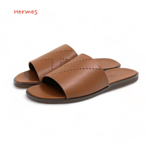 HERMES шлепанцы коричневые перфорация кожаная подошва