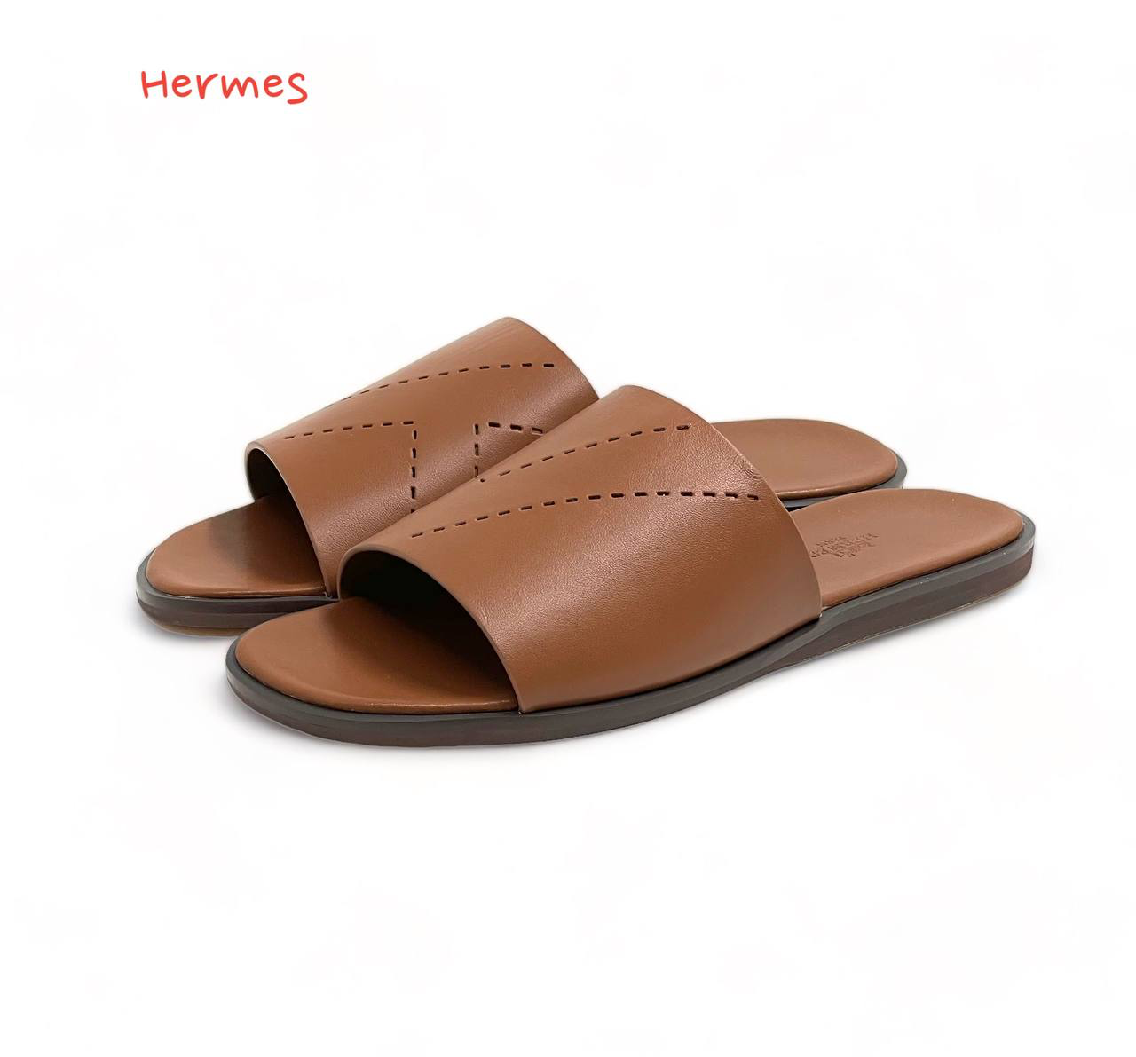 HERMES шлепанцы коричневые перфорация кожаная подошва