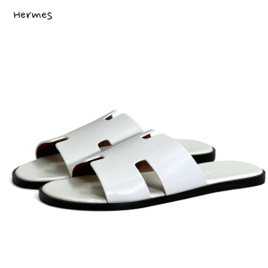 HERMES Тапочки из белой гладкой кожи белая стелька