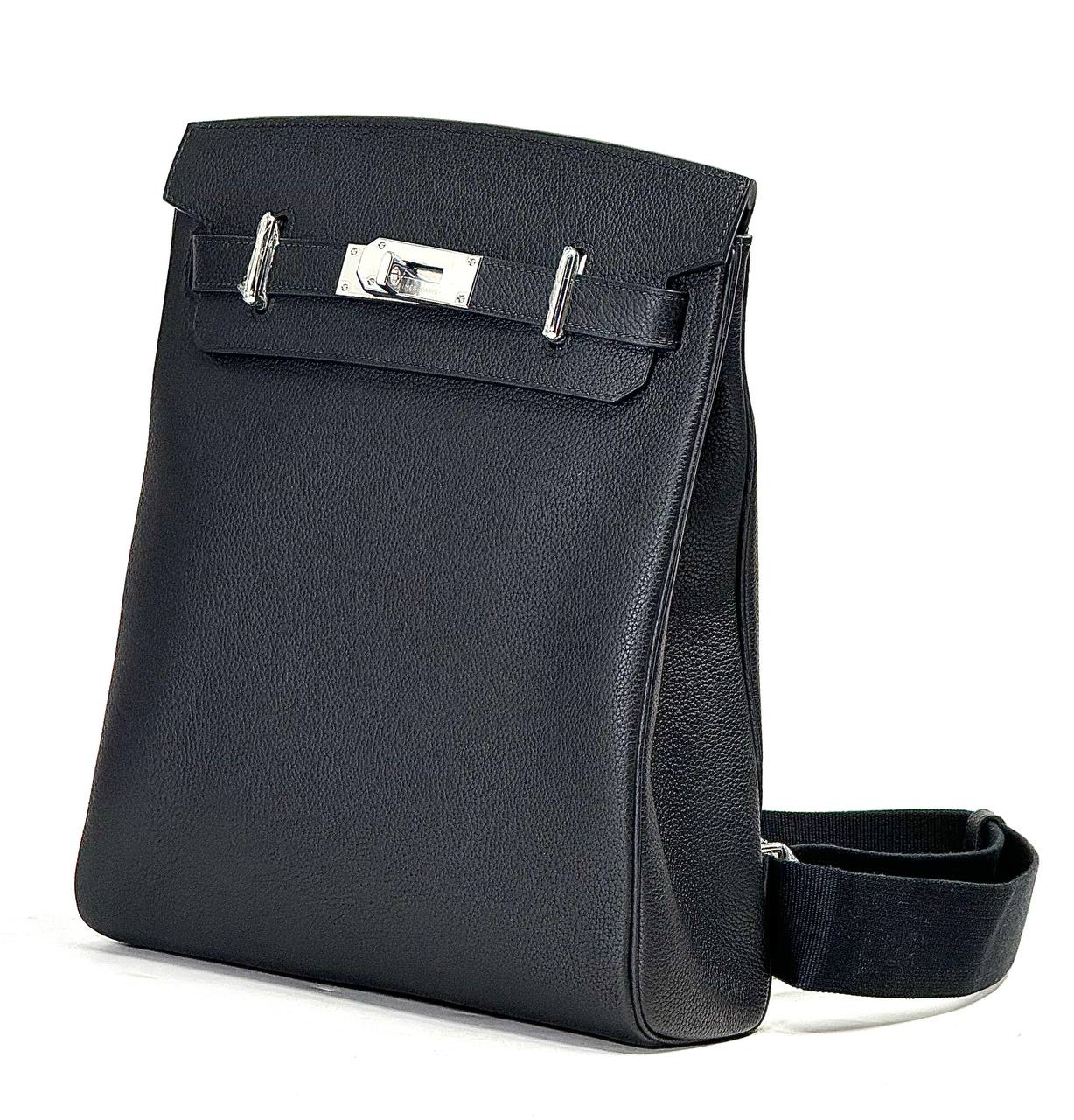 HERMES слинг черный с 2 хлястиками и фирменным замком большой