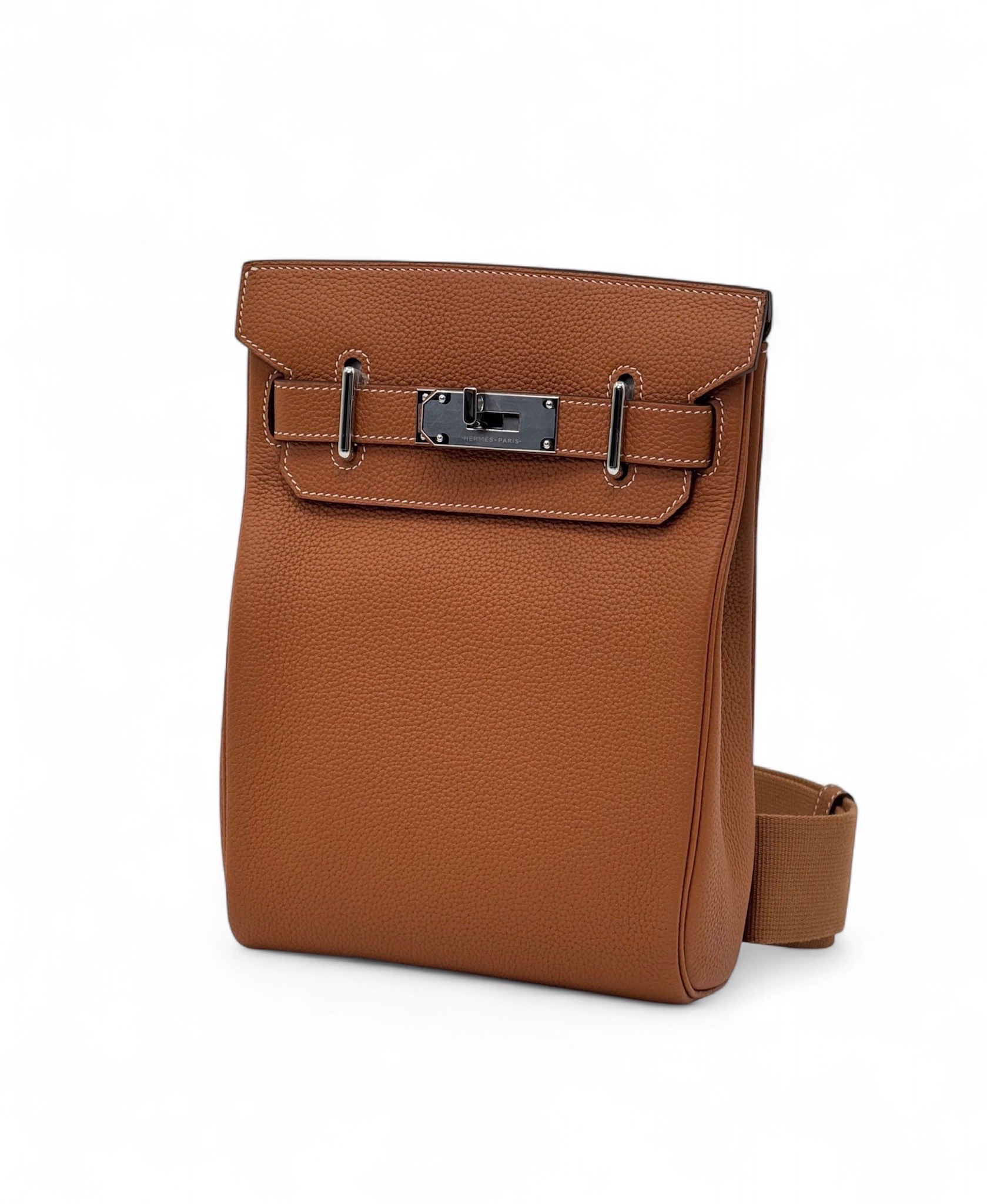HERMES Слинг коричневый с 2 хлястиками и фирменным замком