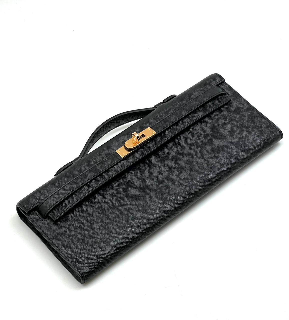HERMES сумка-барсетка черная кожа эпсом золото