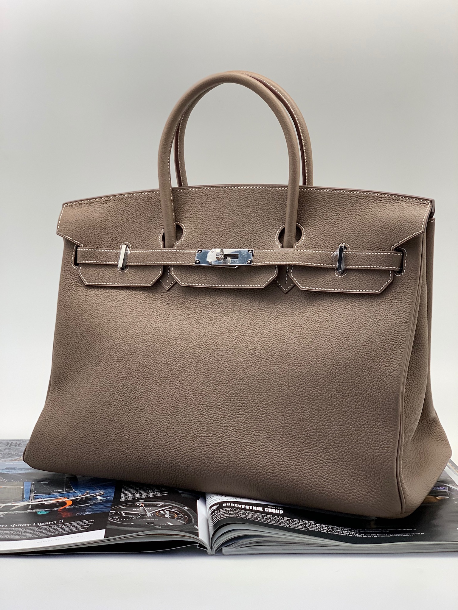 HERMES сумка Birkin РУЧНАЯ кожа Того 40 см бежевая фурнитура серебро