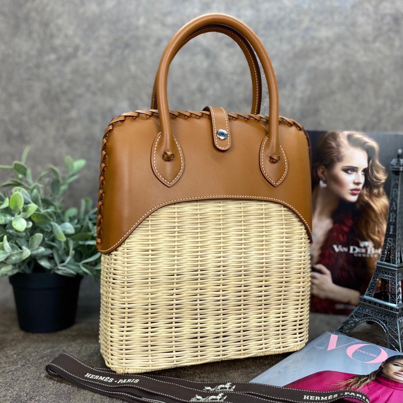 HERMES сумка Bolide плетенная с отделкой из коричневой кожи